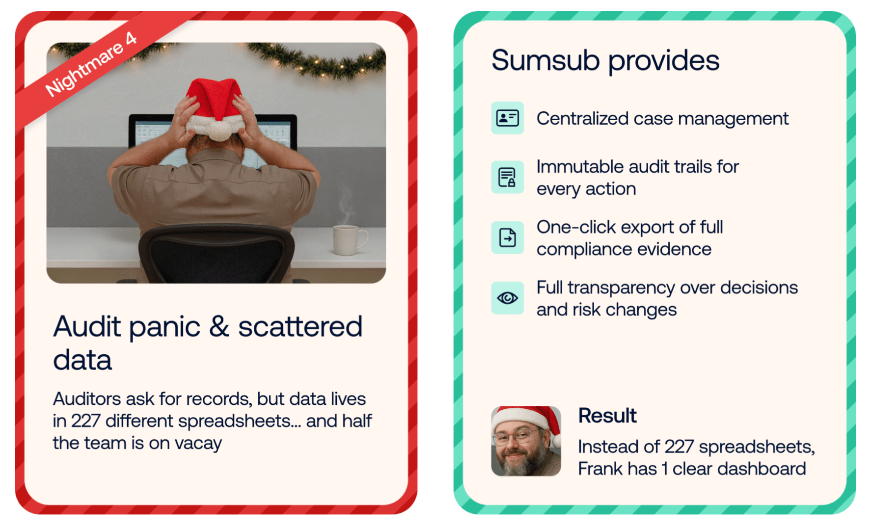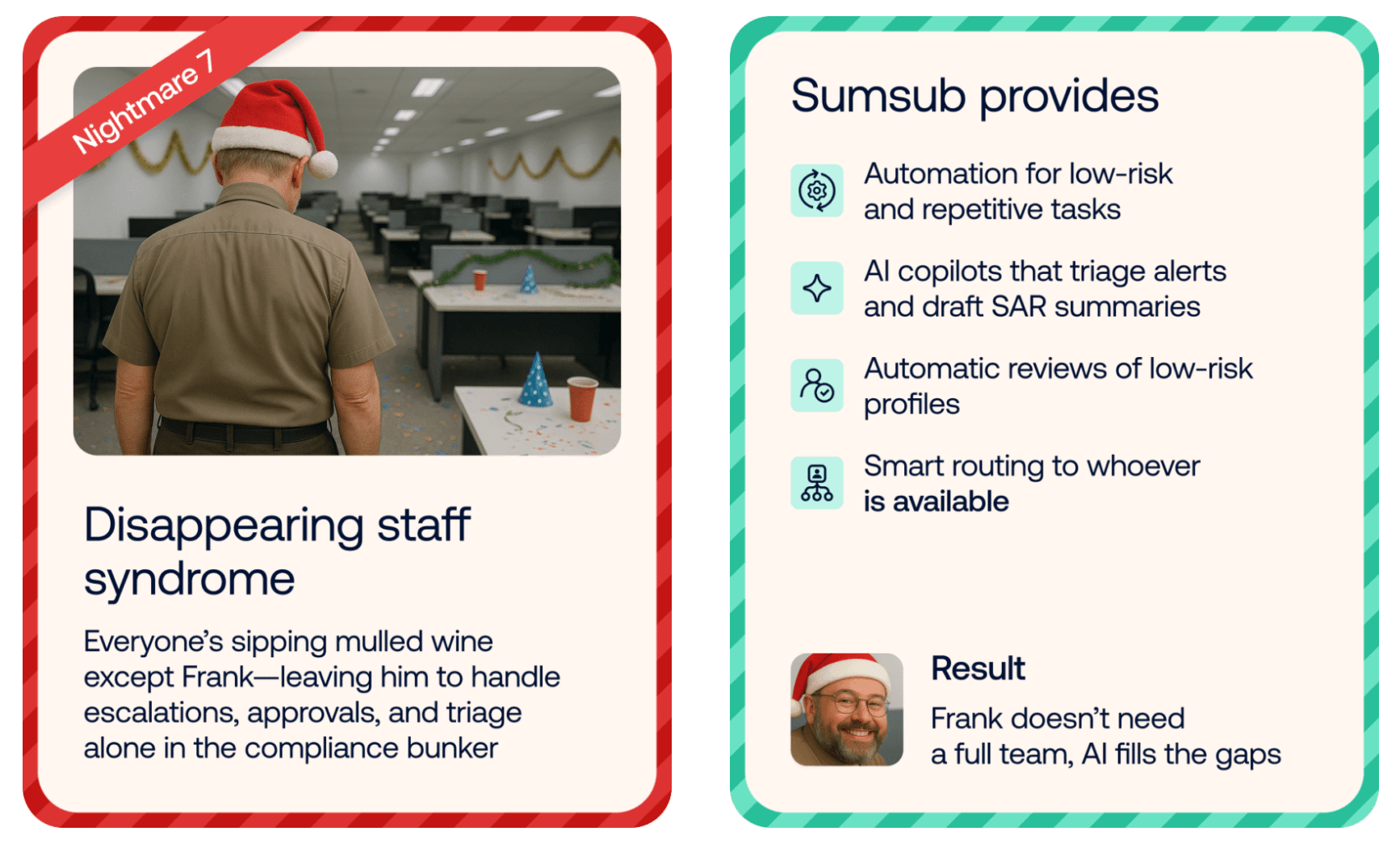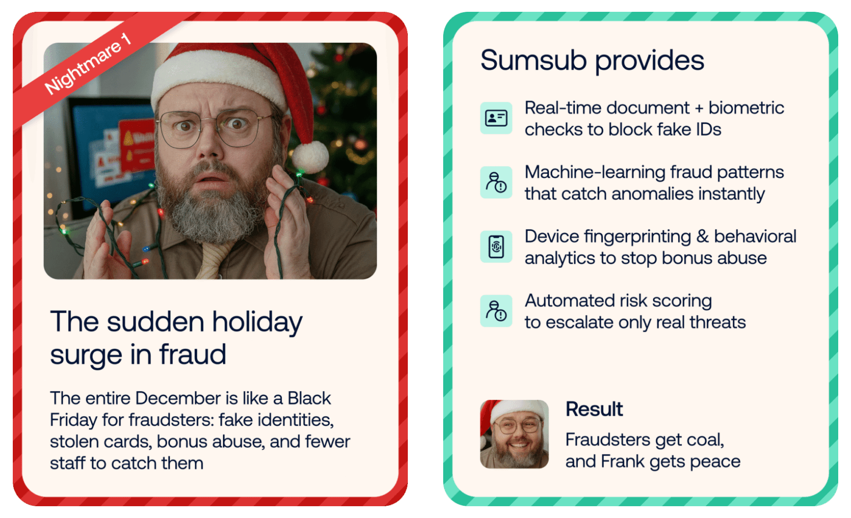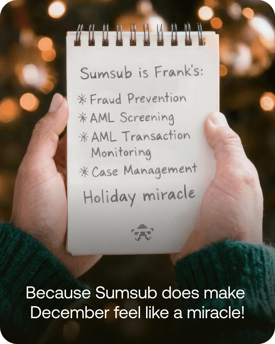 But don't worry, Frank, Sumsub got you covered! This Christmas, you can finally enjoy the holidays like everyone else… not the way you usually do 😉