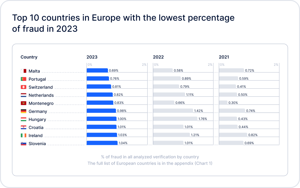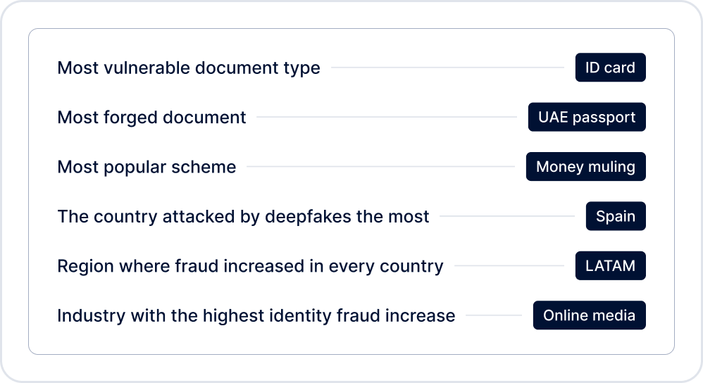 According to Sumsub’s 2023 Identity Fraud Report, fraud is not only increasing in number; it’s also getting more sophisticated. Even documents from developed economies were increasingly forged by fraudsters, with ID cards remaining the most frequently exploited for identity fraud (accounting for nearly 75% of all fraud involving identity documents). The most affected industries in 2023 were online media, professional services, healthcare, transportation, and video games.
