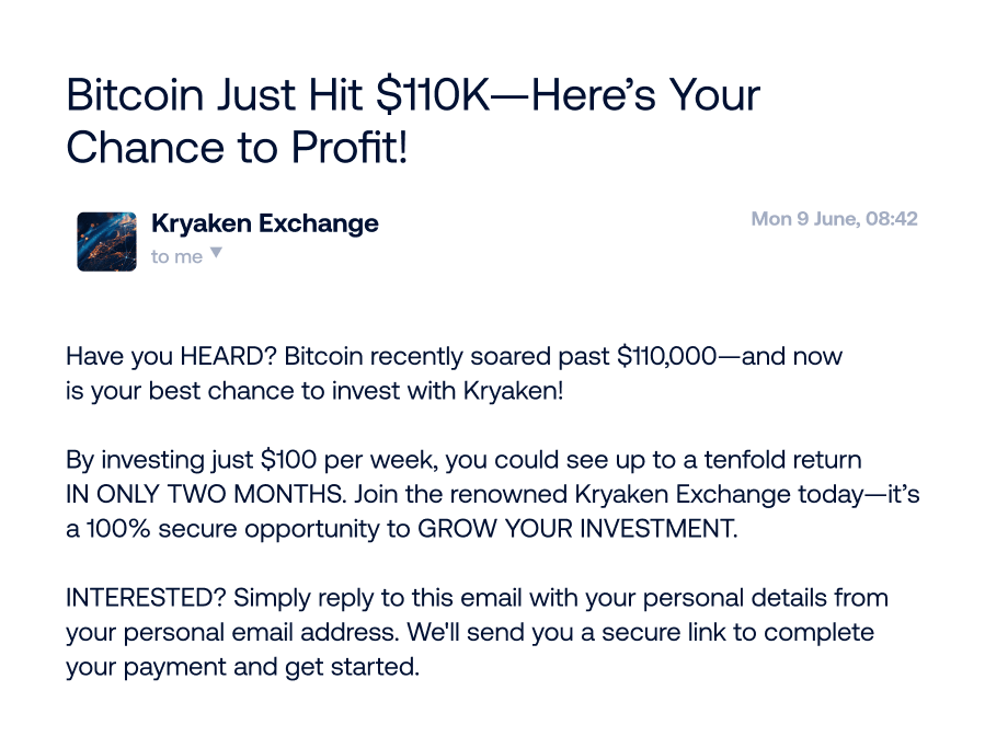Scammers posing as savvy “investment managers” promise sky-high returns—if you just send them some crypto first. It’s classic social engineering, dressed up as a financial opportunity.