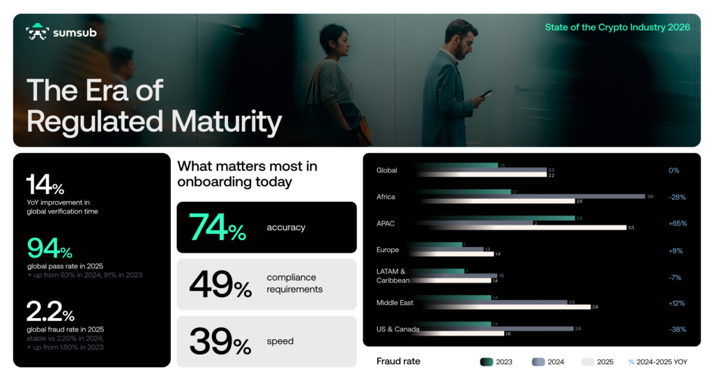 “Crypto has entered a phase where operational discipline matters more than momentum.” said Andrew Sever, Co-Founder and CEO at Sumsub. “In 2025, the conversation shifted from ‘How fast can we grow?’ to ‘How well can we scale under scrutiny?’. Regulatory execution, fraud resilience, and onboarding efficiency are no longer separate challenges—they’re interconnected systems problems. In 2026, sustainable growth will belong to those who build reliability into the core of their product and infrastructure from day one.”