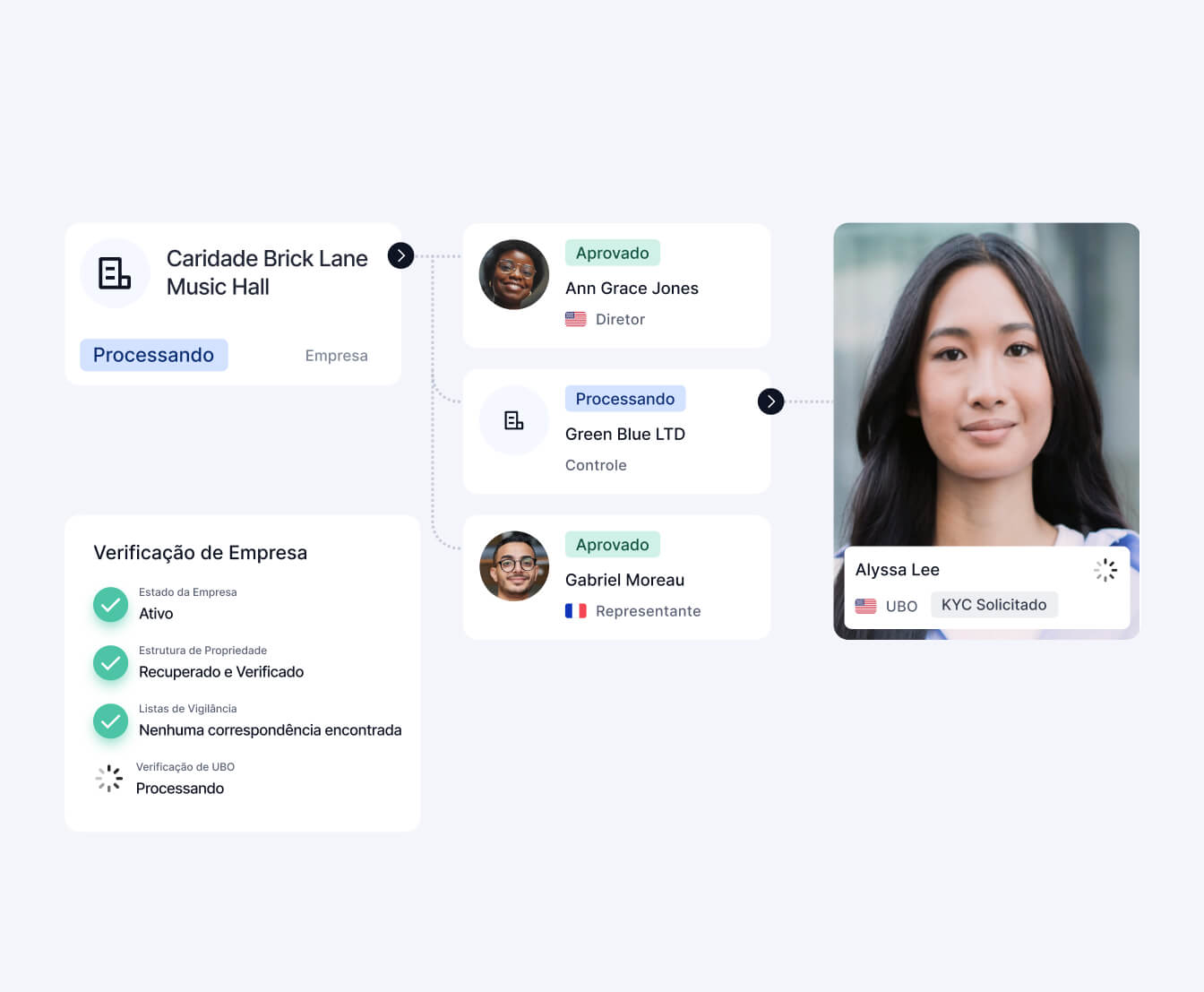 KYC (Know Your Customer) é um processo usado por instituições financeiras para verificar a identidade dos clientes e avaliar riscos de fraude ou lavagem de dinheiro. Uma solução KYC para serviços financeiros reúne ferramentas e processos que permitem cumprir requisitos regulatórios e realizar uma diligência eficiente e precisa.
